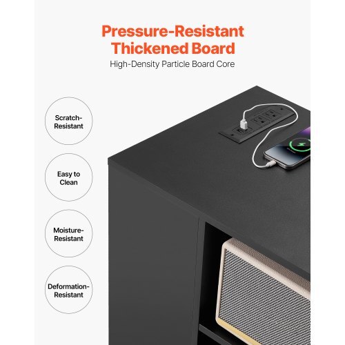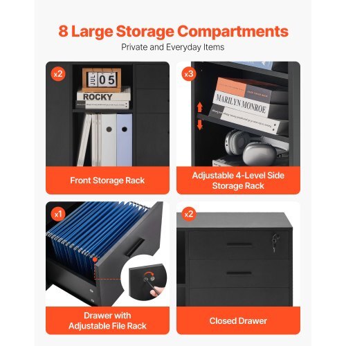 VEVOR 3 Drawer Wooden File Cabinet, Mobile Filing Cabinet withPower Strip, Lockable Rolling File Storage with Adjustable Shelves& 5 Wheels, Floor Standing Printer Stand for Home Office School,Black