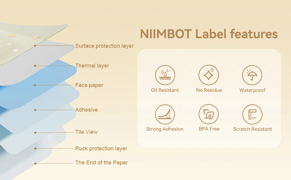 NIIMBOT APP offers variety of fonts, frame and Icons. one-click printing, saving time and effort. Thermal print technology provides clear lettering.No ink or toner required. With better quality with stronger adhesiveness. The Peel-and-stick thermal labels with strong self-adhesive backing.