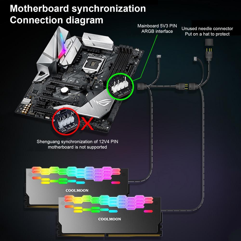 It supports bare metal desktop high, medium and short memory sticks, and can install single particle and double-sided particle memory. It supports connection with addressable 5V ARGB motherboards, such as compatible for ASUS, MSI, Gigabyte, ASRock, etc., and realizes motherboard software control lights, programmable custom 16 million colors.
