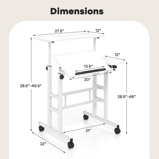 Mobile Stand-up Computer Desk Adjustable with 2 Tilting Desktops-White – Color: White