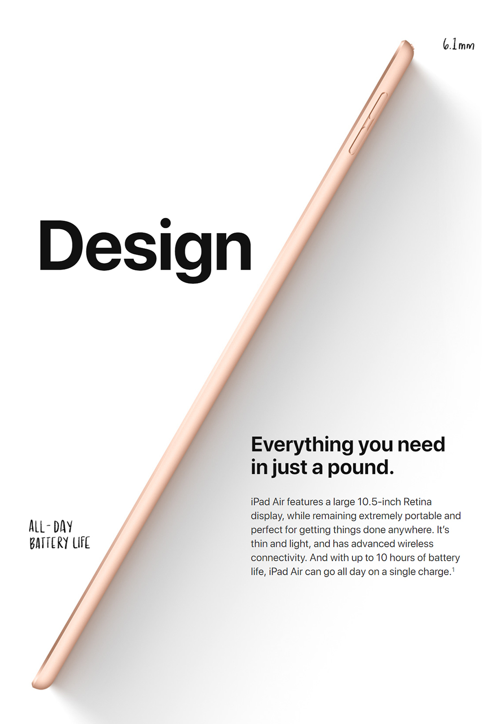 The new iPad Air 2019; technology, beauty and power in one slim body. From every angle, it is so beautiful, fashionable, full of technology.